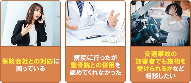 A. まずは当院にお電話ください。事故の状況は一つとして同じものがないため、お話を伺った上で最適な初動対応をアドバイスいたします。